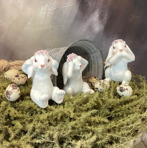 Set van 3 konijntjes " Horen, zien en zwijgen "